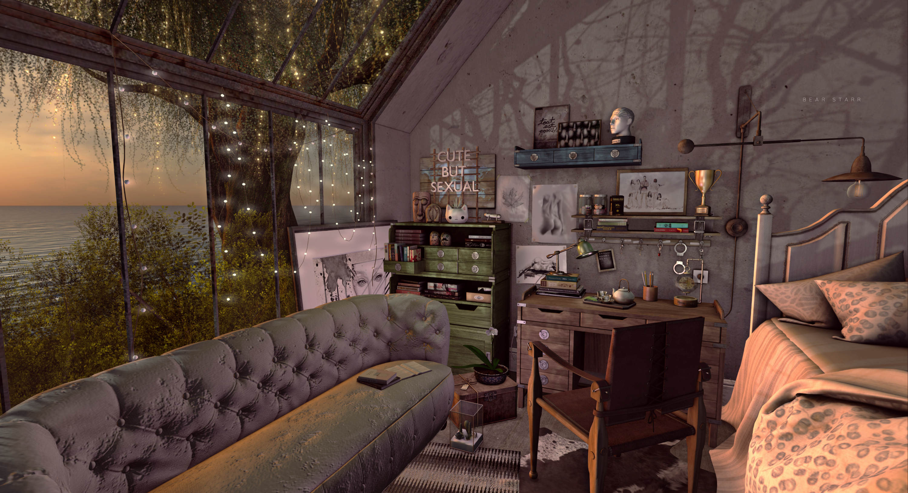 ➵ Curved Shelves (above bed and against wall)
