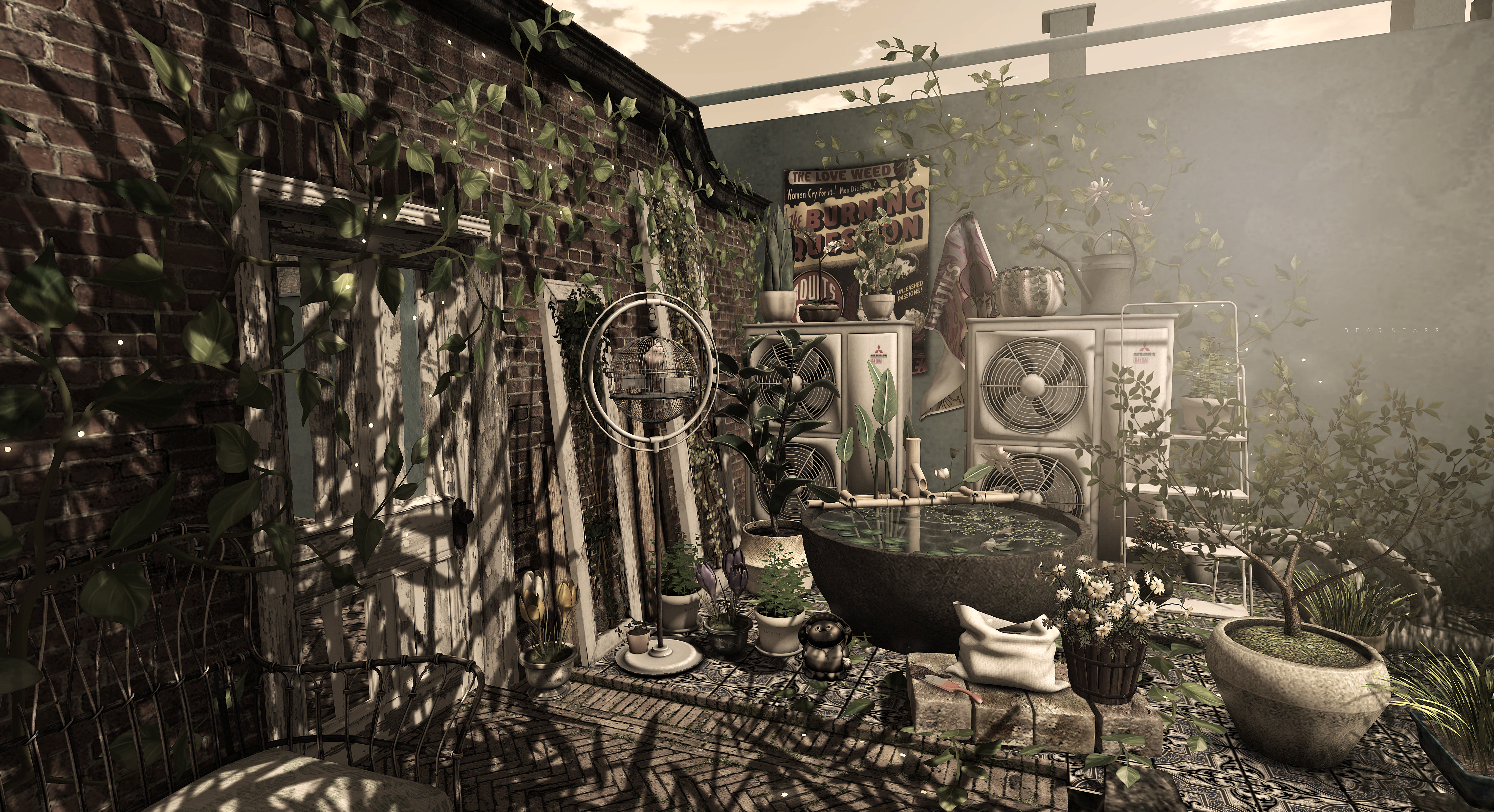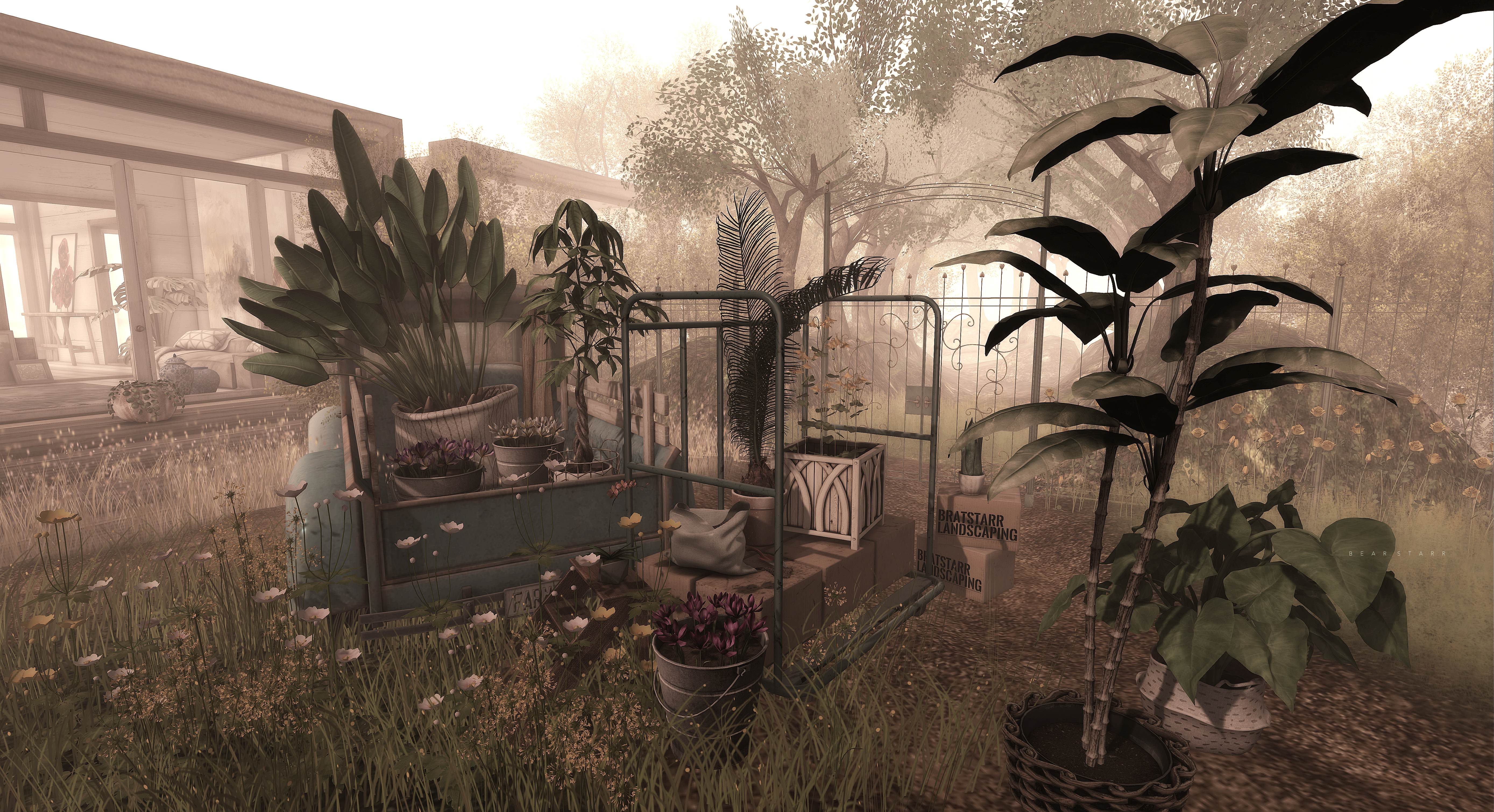 ▶ {LEFT COUCH AREA – Plants in foreground}