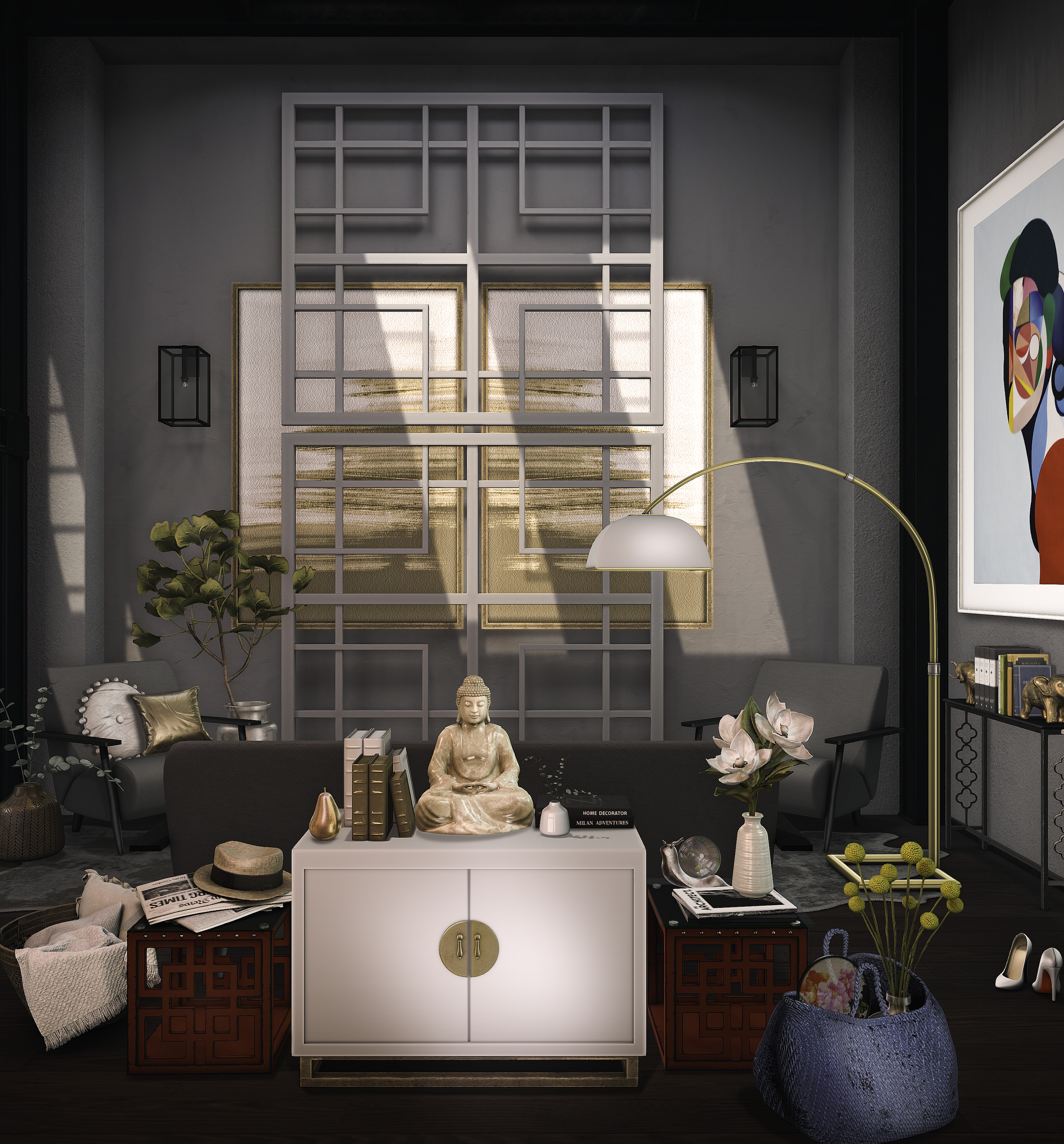 ● FANCY DECOR Nannerl Lamp (on white console table)